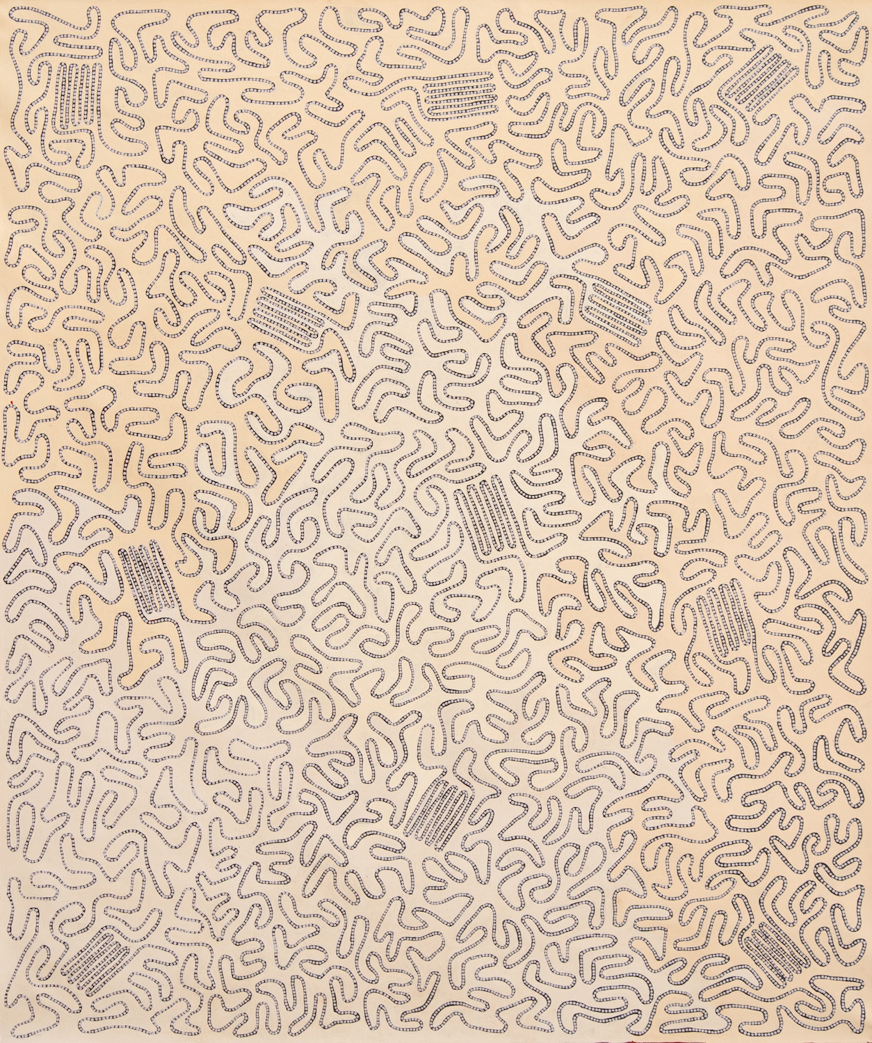 Adrian is the son of Joseph Jurra Tjapaltjarri, one of the great painters from Papunya tula Artists. Adrian started painting for Papunya Tula Artists in 2003.
