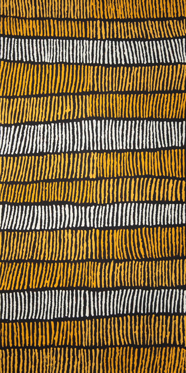 Irene Nungurrayi is a Pintupi artist born in Papunya She lives in Kintore. Her parents, Narrabri Nakamarra Reid and Hilary Tjapaltjarri were both painters with Papunya Tula Artists.